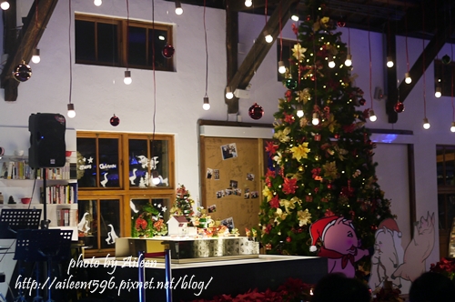 一進門就看到長長的桌子和非常有耶誕節氣氛的擺設。