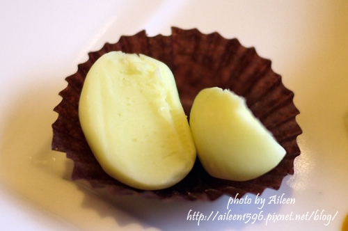 看起來帶有一點點綠色感覺的白巧克力,