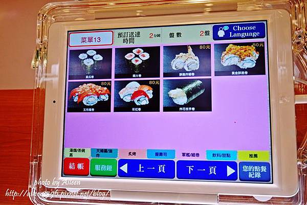 除了在轉盤上的壽司可以自由拿取之外,還可以利用觸控面板來選單,