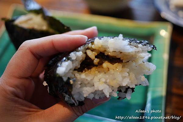 搭配上外面烤的香酥的海苔,這個飯糰真的非常的好吃。