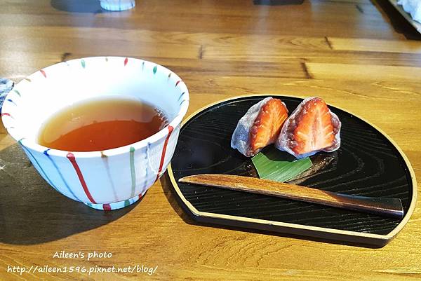 另外會送上超好吃的草莓大福,這個草莓大福好吃到我現在光想都會流口水。