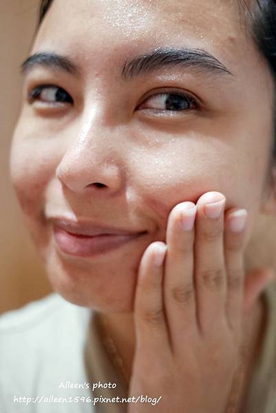 不過均勻化圓塗抹之後,可以發現這些白色小顆粒會慢慢溶化掉。