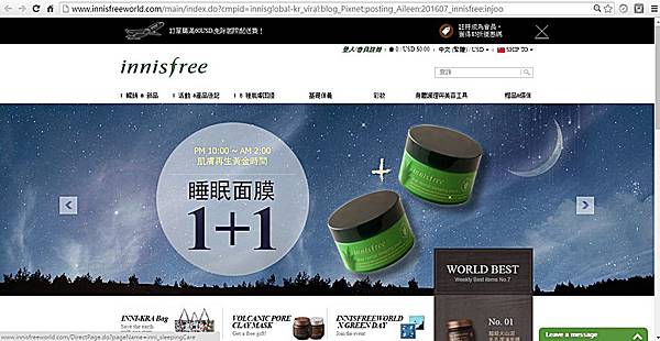 因為韓國總公司架了一個innisfreeworld的產品購物網頁,